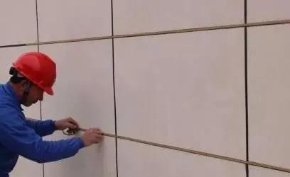 膩子施工完,涂刷抗堿封閉底漆后,可進行分格縫工序。根據設計的分格大小,用彈線的方式在墻面上畫分格。