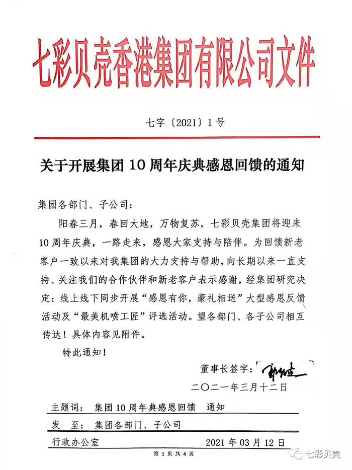 關(guān)于開展集團10周年慶典感恩回饋的通知(圖文)